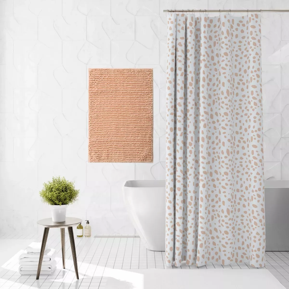 Set de Baño Completo (Cortina + Alfombra + Ganchos)