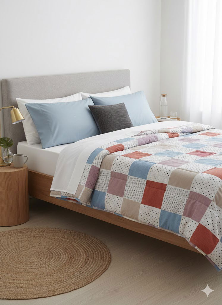 Acolchado Estampado Reversible | 1 1/2p Cuadros